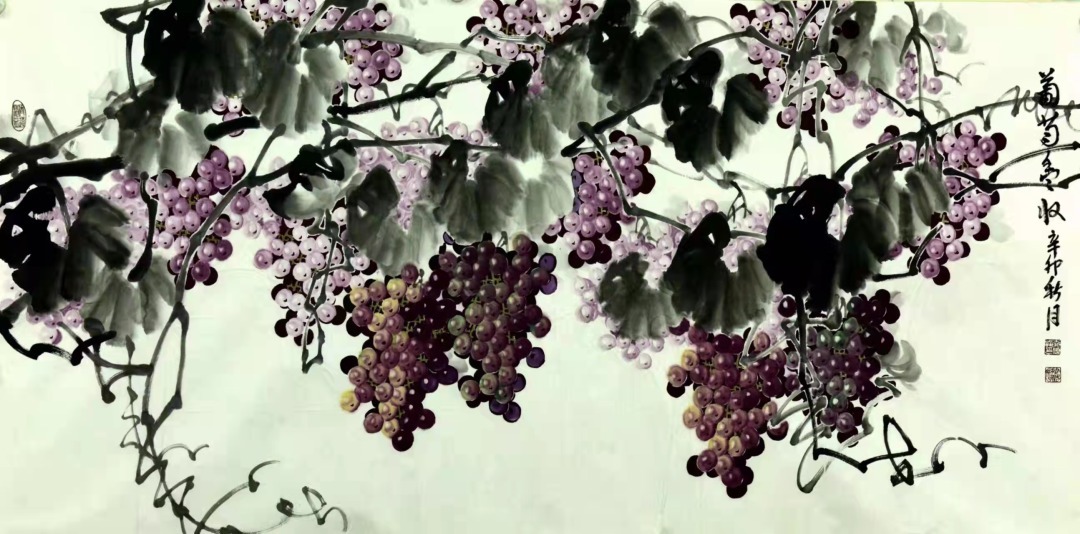 摘要:整幅图于浑朴中见清秀,于洒脱中含缜密,于酣畅中寓意蕴,显示了娴熟的技法。几幅葡萄作品,是作者最擅长的画作,更显别具一格,独家风韵。画风清